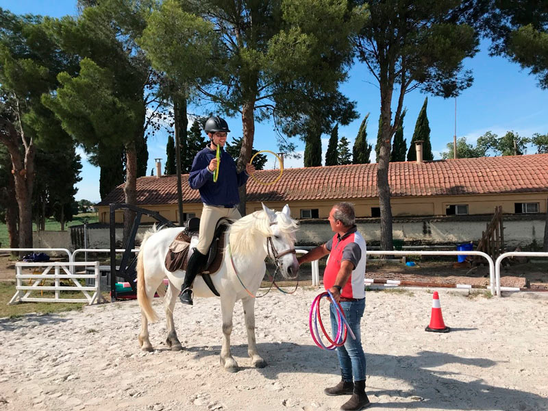 Aunque puede haber casos especiales y puntuales en los que sí que se realicen ejercicios al trote y al galope ya que fomenta y aumenta la autoestima del paciente y eso les ayuda mucho en su evolución.